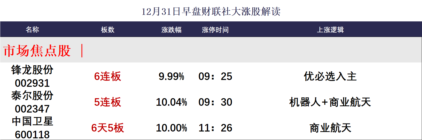 財(cái)聯(lián)社12月31日電,今日午盤全市場(chǎng)共34股漲停,連板股總數(shù)9只,16股封板未遂,封板率為68%(不含ST股、退市股)。焦點(diǎn)股方面,鋒龍股份繼續(xù)一字漲停晉級(jí)6連板,商業(yè)航天概念股泰爾股份5連板、中國(guó)衛(wèi)星6天5板。