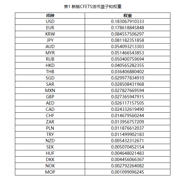 財(cái)聯(lián)社12月31日電,中國外匯交易中心發(fā)布公告,調(diào)整CFETS人民幣匯率指數(shù)貨幣籃子的權(quán)重以及BIS貨幣籃子人民幣匯率指數(shù)的貨幣籃子和權(quán)重。新版指數(shù)自2026年1月1日起生效。新版CFETS貨幣籃子和權(quán)重中,美元權(quán)重從約0.19460降至0.183067910333,歐元權(quán)重從約0.18079降至0.178618845848,日元權(quán)重從約0.08963降至0.081182351858,盧布權(quán)重從約0.04603升至0.050400759694。