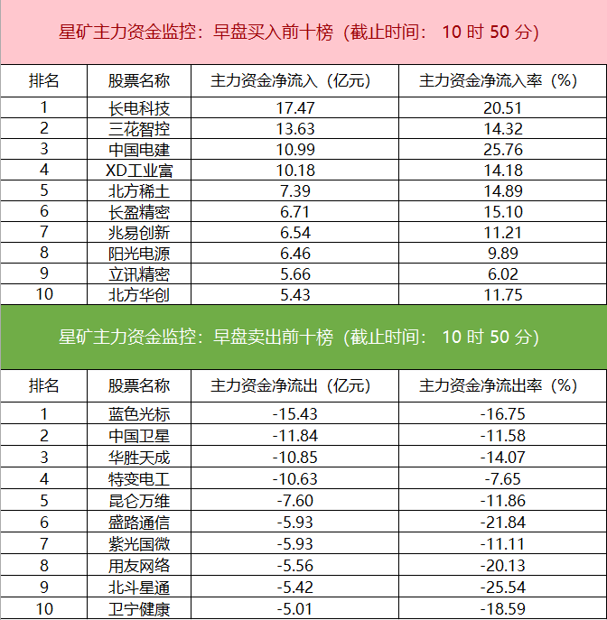 財(cái)聯(lián)社1月16日電,財(cái)聯(lián)社星礦數(shù)據(jù)顯示,今日早盤主力資金凈流入電子、半導(dǎo)體、機(jī)械設(shè)備等板塊,凈流出計(jì)算機(jī)、國(guó)防軍工、文化傳媒等板塊,其中計(jì)算機(jī)板塊凈流出超152億元。個(gè)股方面,長(zhǎng)電科技漲停,主力資金凈買入超17.47億元位居首位,三花智控、中國(guó)電建、XD工業(yè)富獲主力資金凈流入居前;藍(lán)色光標(biāo)遭凈賣出超15億元,中國(guó)衛(wèi)星、華勝天成、特變電工資金凈流出額居前。