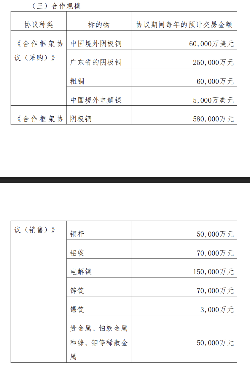 財(cái)聯(lián)社1月19日電,江西銅業(yè)(600362.SH)公告稱,公司已與中國兵工物資集團(tuán)有限公司簽訂《合作框架協(xié)議》,公司向兵工物資采購中國境外陰極銅、廣東省內(nèi)陰極銅、粗銅、中國境外電解鎳,同時(shí)向兵工物資供應(yīng)中國境內(nèi)(除廣東?。╆帢O銅、銅桿、鋁錠、中國境內(nèi)電解鎳、鋅錠、錫錠、貴金屬、鉑族金屬和錸、鉬等稀散金屬等產(chǎn)品。協(xié)議期限為2026年1月1日至2028年12月31日。兵工物資為公司控股子公司江銅國貿(mào)的股東,此次交易構(gòu)成關(guān)聯(lián)交易。小財(cái)注:據(jù)1美元=6.96元人民幣測算,江西銅業(yè)此次協(xié)議約定每年采購金額約為76.26億元,銷售金額約為97.3億元。