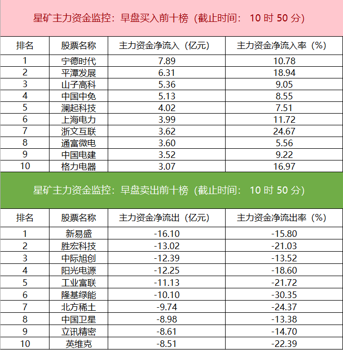 財聯(lián)社1月20日電,財聯(lián)社星礦數(shù)據(jù)顯示,今日早盤主力資金凈流入銀行、非銀金融、證券等板塊,凈流出電新行業(yè)、電子、有色金屬等板塊,其中電新行業(yè)凈流出超139億元。個股方面,寧德時代上漲,主力資金凈買入超7.89億元位居首位,平潭發(fā)展、山子高科、中國中免獲主力資金凈流入居前;新易盛遭凈賣出超16億元,勝宏科技、中際旭創(chuàng)、陽光電源資金凈流出額居前。