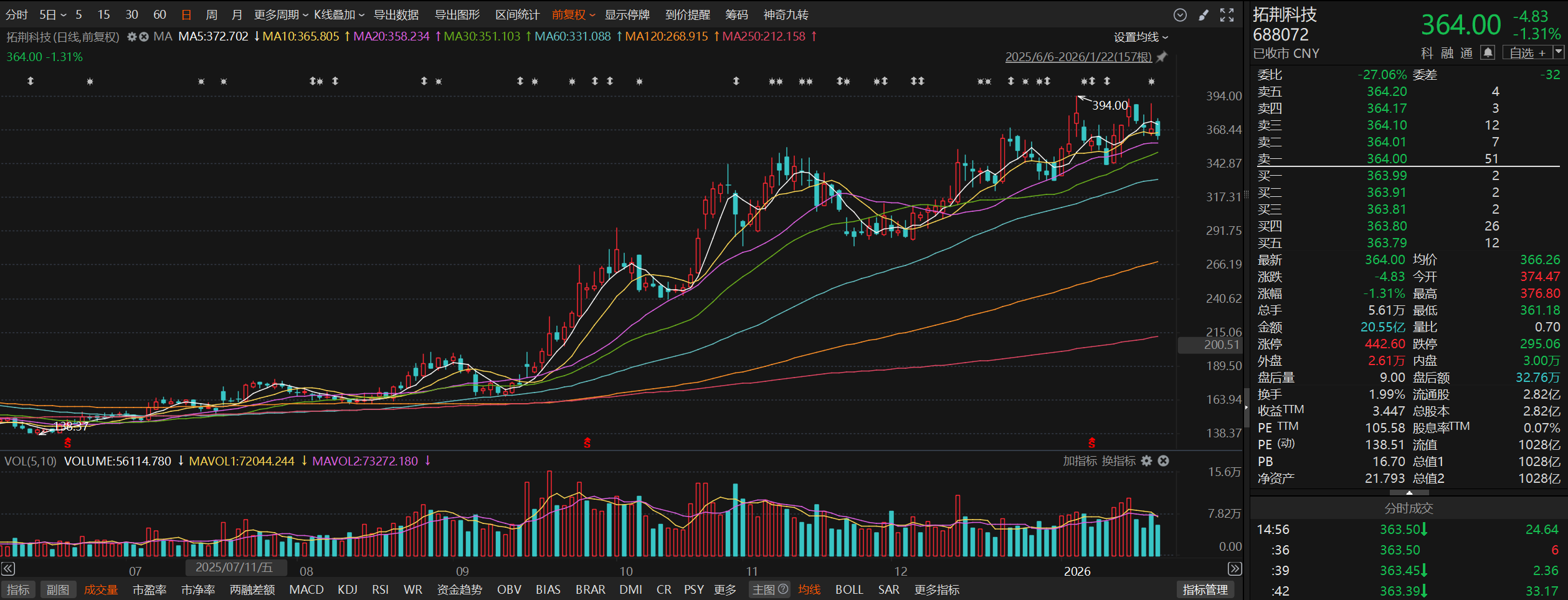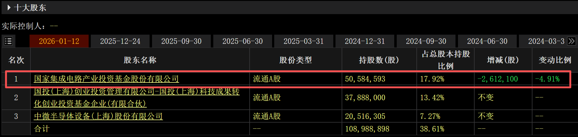 小財注:截至1月12日,國家大基金位列拓荊科技第一大股東,持股5058.46萬股,占公司總股本的17.92%。拓荊科技2025年11月20日公告,國家大基金計劃2025年12月12日至2026年3月11日減持不超過843.49萬公司股份,即不超過公司總股本的3%。資料顯示,國家大基金此前已于2025年12月17日至2026年1月12日期間減持444.21萬股。二級市場上,拓荊科技自2025年6月低點迄今股價累計最大漲幅達(dá)185%。