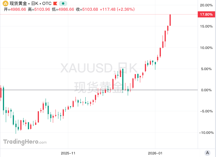 現(xiàn)貨黃金日內(nèi)漲超2%突破5100美元/盎司