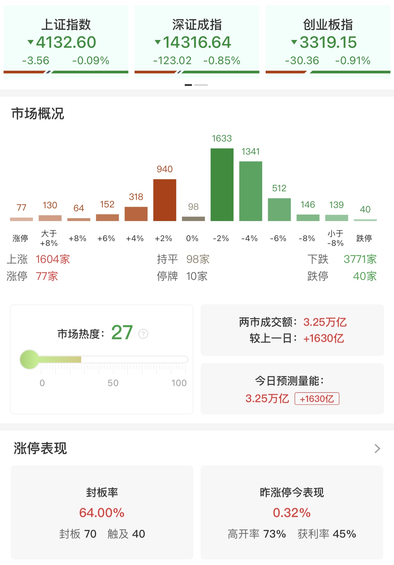 財聯(lián)社1月26日電,市場全天震蕩調整,大小指數(shù)分化明顯,深成指、創(chuàng)業(yè)板指高開低走,盤中均跌超1%。滬深兩市成交額3.25萬億,較上一個交易日放量1630億。盤面上,市場熱點較為雜亂,全市場超3700只個股下跌。從板塊來看,有色金屬板塊漲幅居前,其中貴金屬概念領漲,四川黃金8天4板,曉程科技、湖南黃金、盛達資源等多股漲停,紫金礦業(yè)創(chuàng)歷史新高。油氣概念走強,中國海油創(chuàng)歷史新高,洲際油氣4天3板。太空光伏概念反復活躍,明陽智能、拓日新能、協(xié)鑫集成漲停?;ぐ鍓K震蕩拉升,紅寶麗、澄星股份漲停。下跌方面,商業(yè)航天、半導體設備等板塊跌幅居前。其中多只商業(yè)航天概念股大跌,中國衛(wèi)通、中國衛(wèi)星跌停。截至收盤,滬指跌0.09%,深成指跌0.85%,創(chuàng)業(yè)板指跌0.91%。
