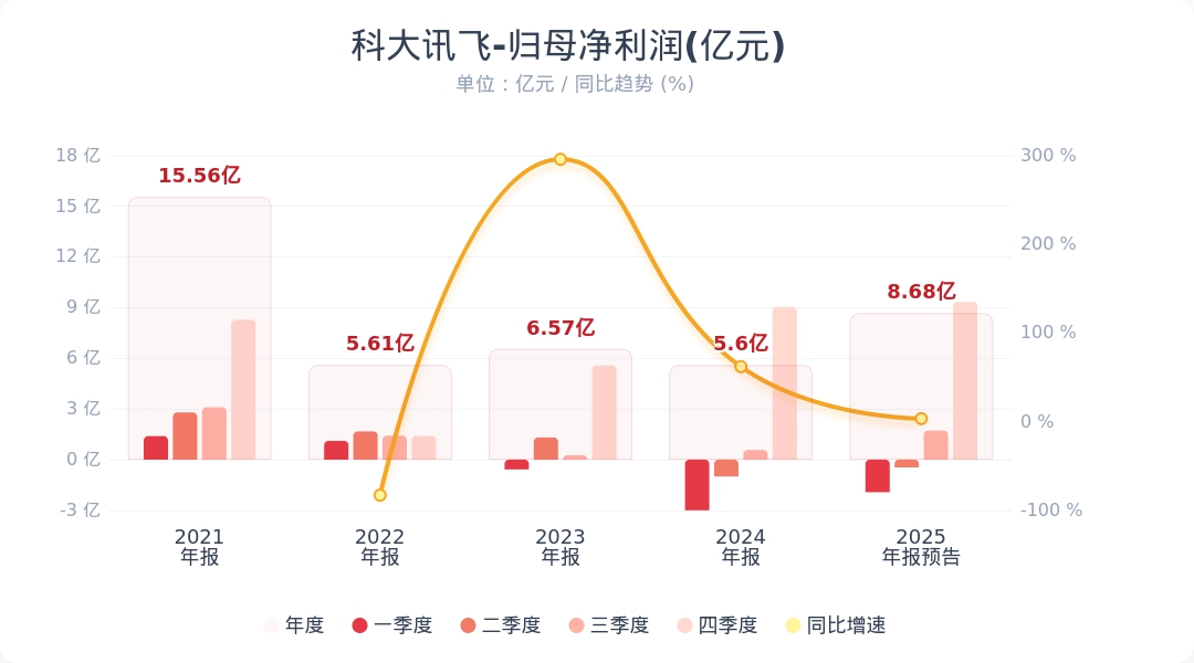 科大訊飛:2025年凈利同比預增40%-70% 人工智能應(yīng)用規(guī)?;涞夭粩嗳〉贸尚?/div>