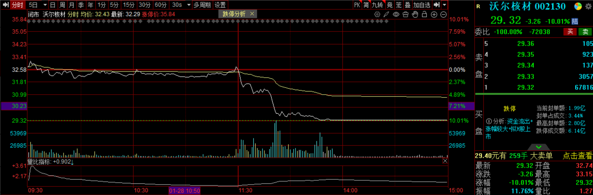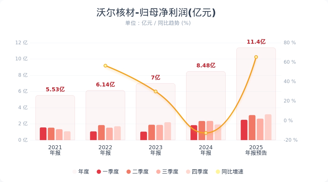 財聯(lián)社1月28日電,沃爾核材(002130.SZ)公告稱,公司預(yù)計2025年歸屬于上市公司股東的凈利潤為11.00億元-11.80億元,比上年同期增長29.79%-39.22%。報告期內(nèi),公司電子材料、通信線纜、電力產(chǎn)品以及新能源汽車產(chǎn)品的市場需求持續(xù)提升,公司各業(yè)務(wù)板塊營業(yè)收入均實現(xiàn)了不同程度增長,其中,公司通信線纜與新能源汽車產(chǎn)品業(yè)務(wù)板塊增速較快,主要原因是:公司通信線纜業(yè)務(wù)受益于數(shù)據(jù)通信等下游行業(yè)需求的快速釋放,相關(guān)產(chǎn)品市場需求顯著增長,帶動收入實現(xiàn)快速提升;新能源汽車產(chǎn)品業(yè)務(wù)則在產(chǎn)業(yè)政策的持續(xù)推動下,繼續(xù)保持著良好的增長態(tài)勢。小財注:沃爾核材2025年Q3凈利2.64億元,據(jù)此計算,2025年Q4凈利預(yù)計2.78億元-3.58億元,環(huán)比增長5%-35%。第四季度凈利潤分析師一致預(yù)測是4.25億,業(yè)績低于預(yù)期。二級市場方面,沃爾核材收盤跌停。