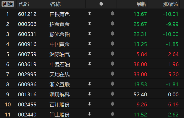 競價看龍頭:白銀有色、招金黃金、豫光金鉛等熱門股一字跌停