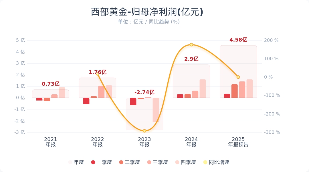 財(cái)聯(lián)社1月30日電,西部黃金(601069.SH)公告稱(chēng),預(yù)計(jì)2025年度歸屬于上市公司股東的凈利潤(rùn)為4.25億元到4.90億元,與上年同期(法定披露數(shù)據(jù))相比,同比增加46.78%-69.23%,與上年同期(追溯調(diào)整后)相比,同比增加67.58%到 93.21%。業(yè)績(jī)?cè)鲩L(zhǎng)主要系自有礦山黃金產(chǎn)品銷(xiāo)量增加及銷(xiāo)售價(jià)格上升所致。小財(cái)注:Q3凈利潤(rùn)1.43億,據(jù)此計(jì)算,Q4凈利潤(rùn)預(yù)計(jì)1.29億-1.94億,Q4凈利潤(rùn)預(yù)計(jì)環(huán)比變動(dòng)-9%至35%。